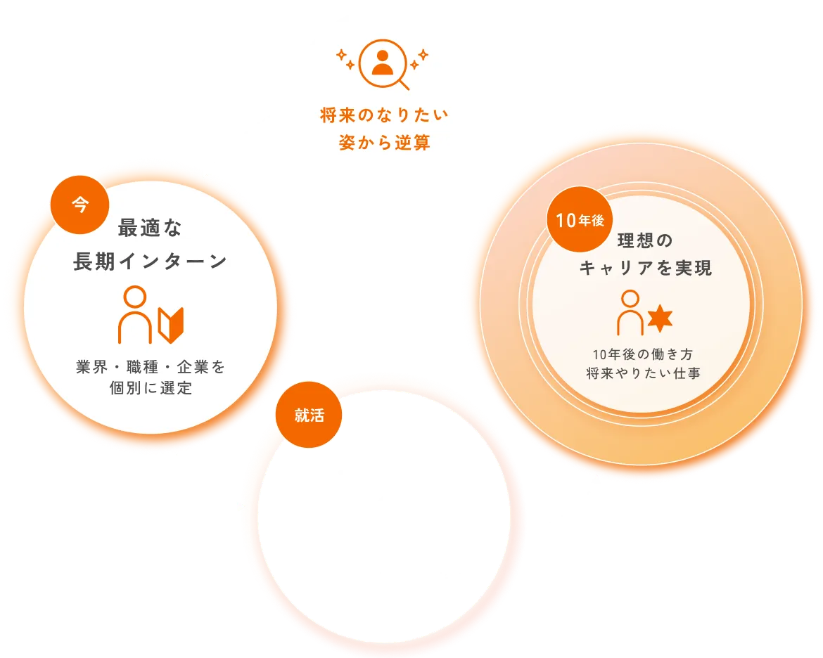 面談内容をもとに、必要なスキルや経験が得られる長期インターン先を厳選してご紹介します。大手からスタートアップまで「思い描く将来に繋がるか」を軸に選定。採用企業と直接つながりがあるため、会社の雰囲気や、仕事内容を具体的にお話しできます。